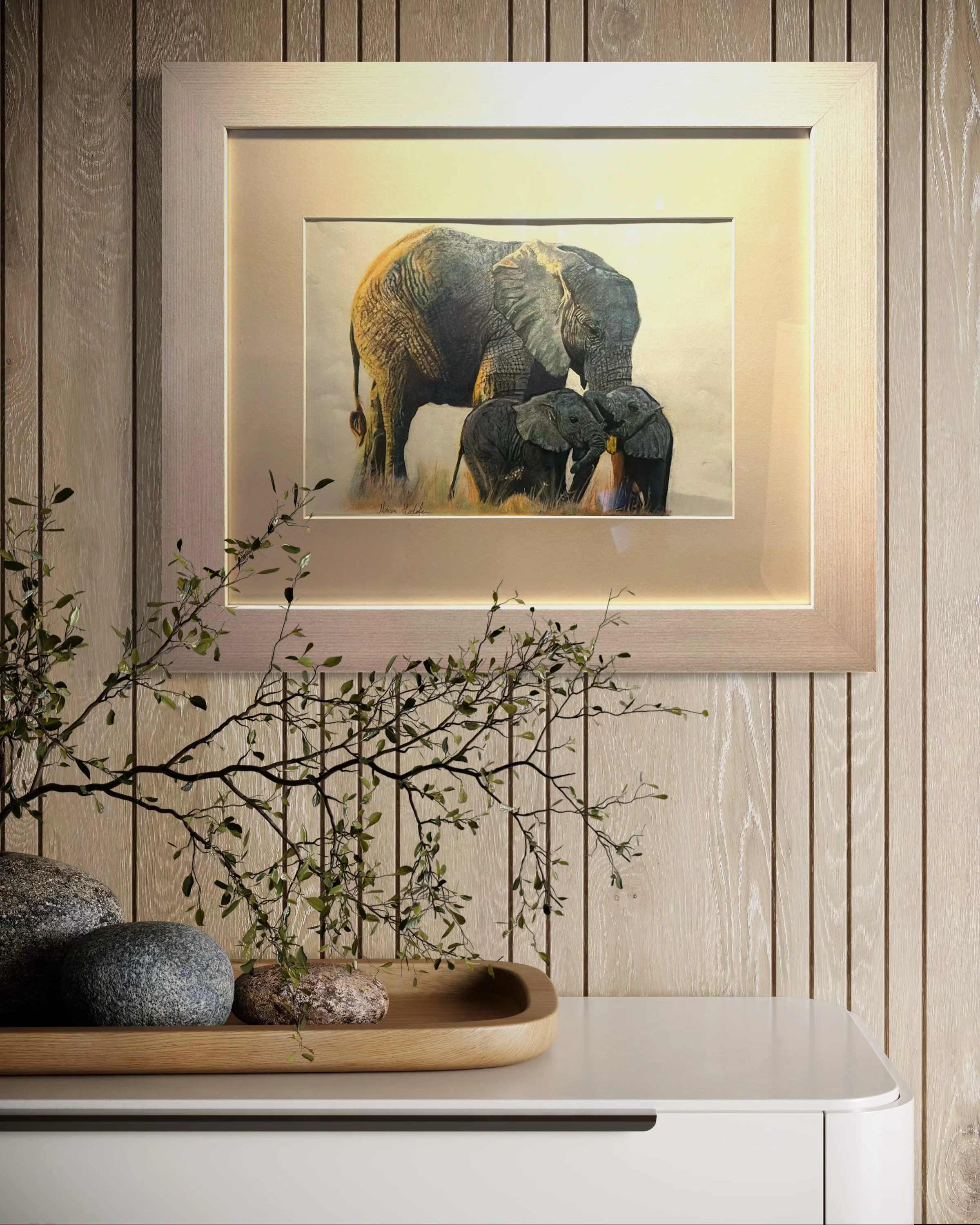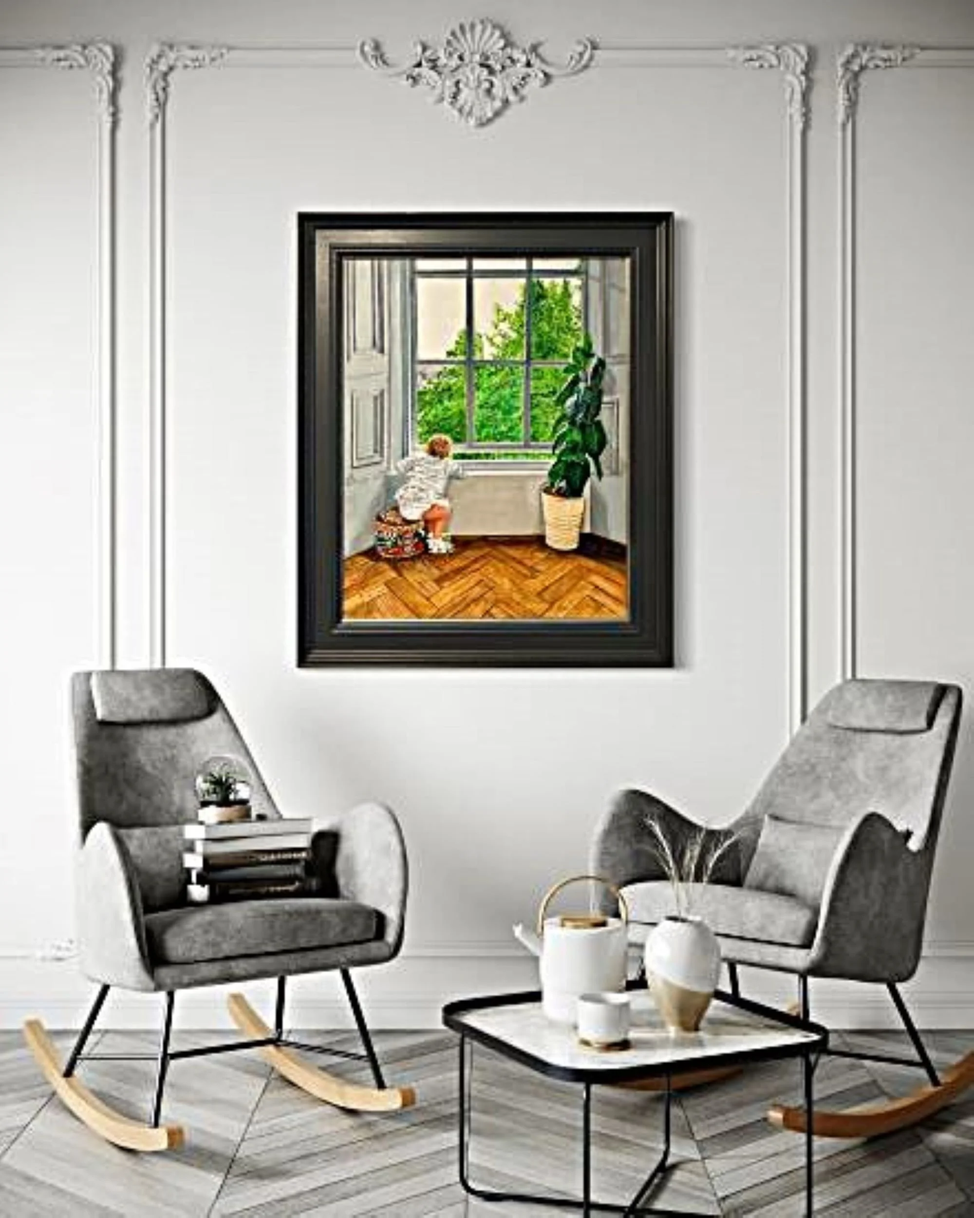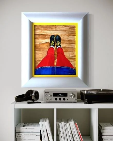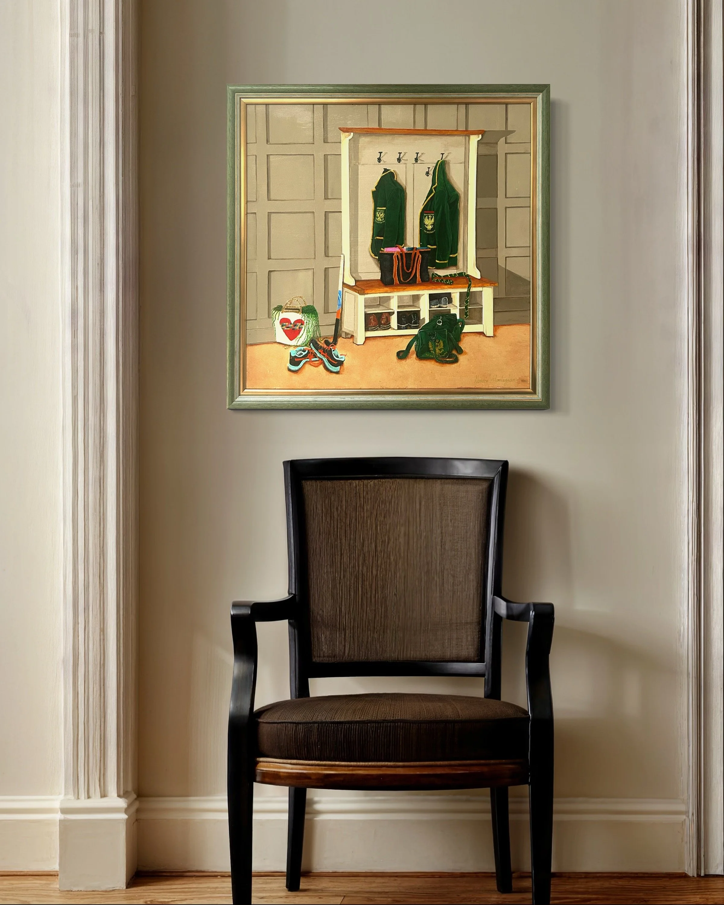 I can provide a framing service for you, and can send examples of frames and pricing. ​I am happy to deliver the painting free of charge if you live locally. If you live further a-field I can arrange a courier who delivers throughout the UK.  I can also arrange international shipping if necessary, with cost of shipping.
