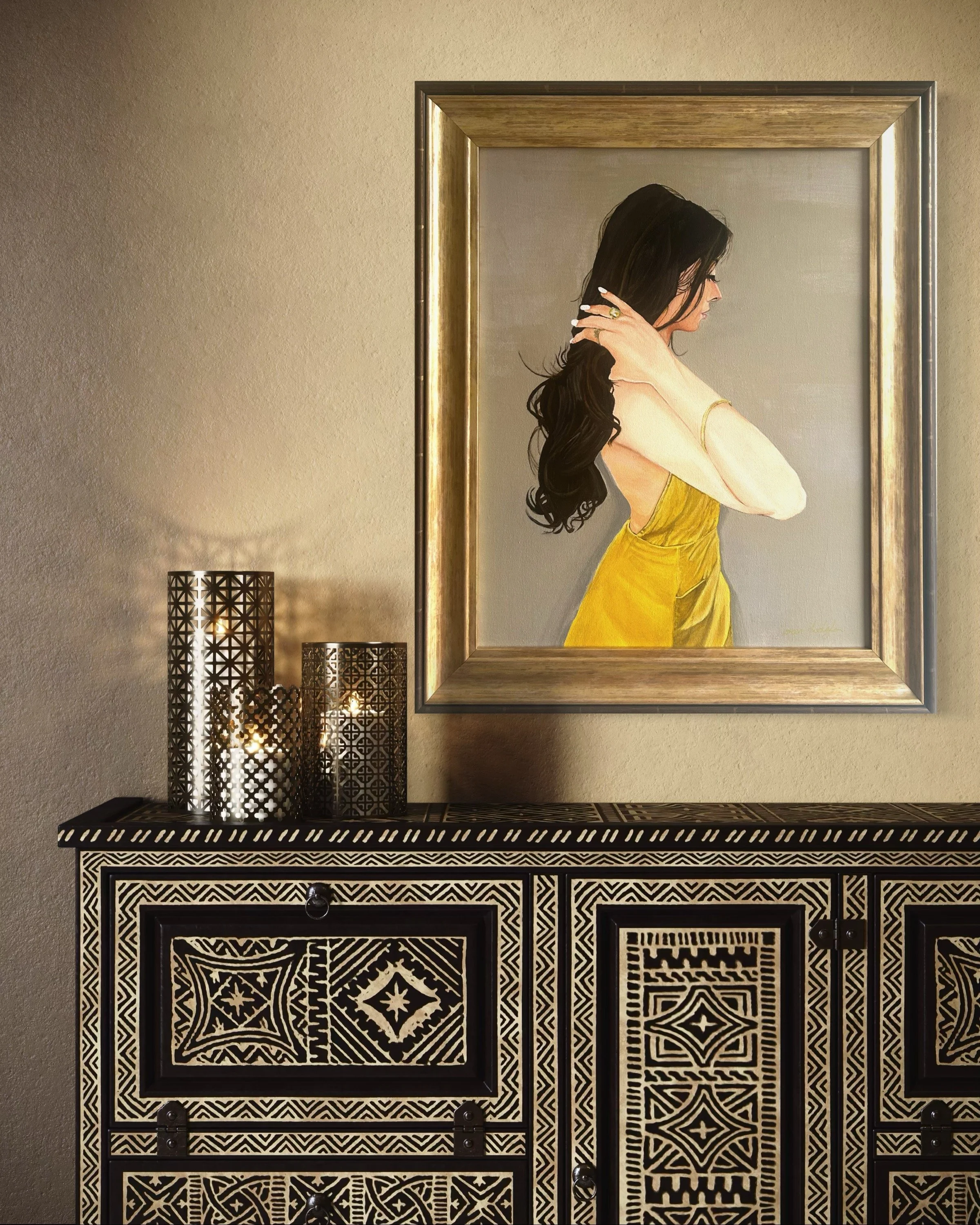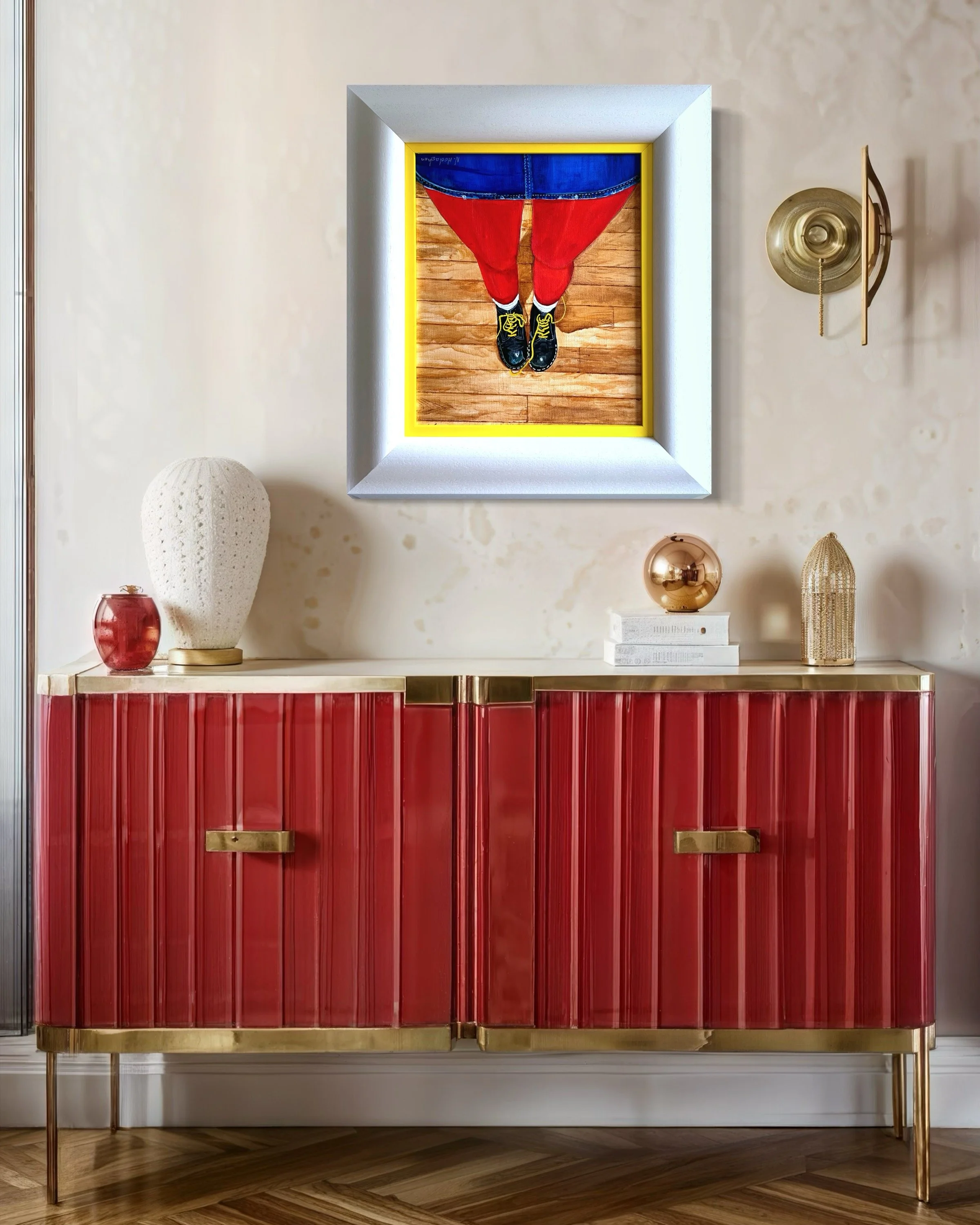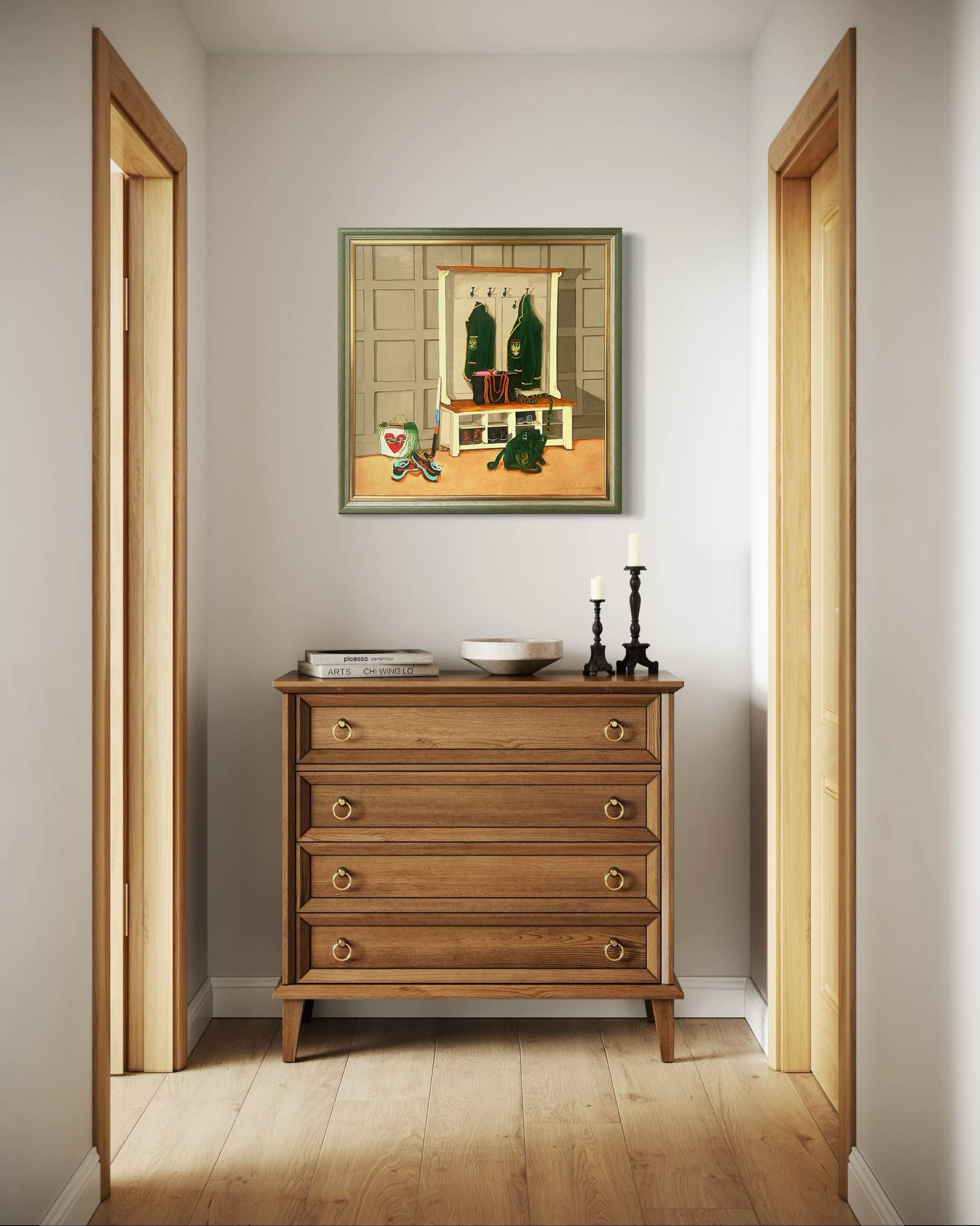 I can provide a framing service for you, and can send examples of frames and pricing. ​I am happy to deliver the painting free of charge if you live locally. If you live further a-field I can arrange a courier who delivers throughout the UK.  I can also arrange international shipping if necessary, with cost of shipping.